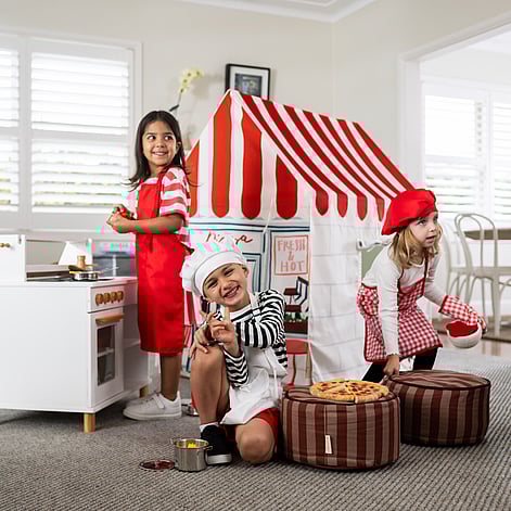 Once assembled, the Flippi Frame can be “flipped” using a range of interchangeable Flippi Tent Covers, turning the tent into an imaginative play hub — from a Pizza Restaurant to a Surf Shack, a Hospital, a Fort, and more.